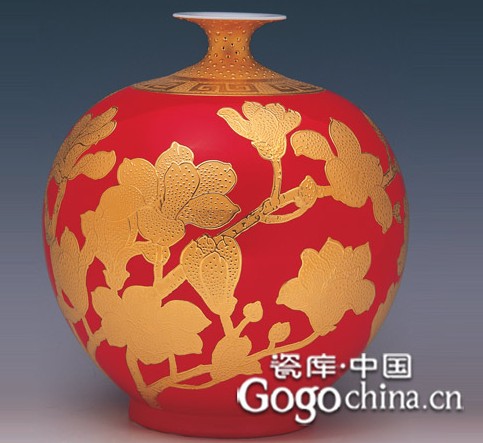 圖:中國紅金玉滿堂描金陶瓷藝術(shù)花瓶