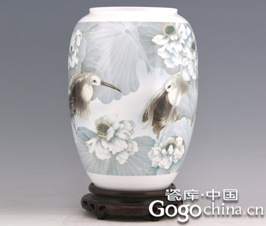 圖:藍色幽夢李志丹大師手繪白鷺陶瓷花瓶