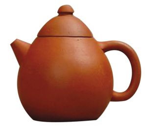 此壺為香港宜興老紫砂協(xié)會(huì)藏品,形制為傳統(tǒng)的龍蛋形,通高10.5厘米,寬12.5厘米,底銘“皎皎秋中月,大彬”。最早記載龍蛋壺的為清康熙、吳鼎梅《陽羨茗壺賦》:“圓者如丸,體稍縱,為龍蛋。”其胎質(zhì)為老朱砂泥,整器純以“打身筒”成形,砂質(zhì)粗礦,制作原始,器表砂孔粗,密度大,但透氣性好,外表修飾略為講究,但壺里粗糙可見,泥片曾用木板拍打促使泥胎緊密結(jié)合,并清晰看到身筒手工接片于流口處,指紋摁壓印極為明顯,壺內(nèi)壁觸摸薄厚不勻,典型的早期制壺風(fēng)格,是研究早期老壺成型工藝的很好教材。