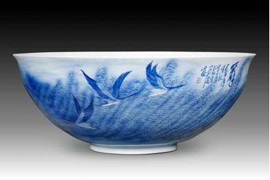 直徑124厘米、高49厘米、最薄處不足2毫米的薄胎大碗將于9月8日-18日,亮相首屆山東陶瓷藝術(shù)博覽會(huì)。此碗曾刷新了吉尼斯世界紀(jì)錄,成為迄今為止最大的釉下青花薄胎碗,2010年曾受邀在上海世博會(huì)上展示,市場(chǎng)估價(jià)兩千余萬(wàn)元人民幣。