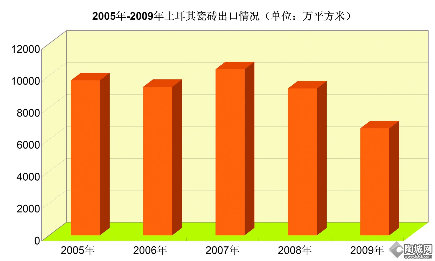 據(jù)意大利雜志《Ceramic World Review》報道,2009年土耳其的瓷磚生產(chǎn)和消費受到了世界金融危機的影響,但這并不影響其繼續(xù)在世界陶瓷生產(chǎn)和消費大國中的位置。2009年,土耳其是世界第9大的瓷磚生產(chǎn)國,全年的瓷磚產(chǎn)量為2.05億平方米;瓷磚消費量為1.38億平方米,居世界第14位。此外,土耳其還是個瓷磚出口大國。2009年受金融危機沖擊,出口量下降了26.8%,但仍以6700萬平方米的出口量居世界第4位,出口量僅在中國、意大利和西班牙之后。
