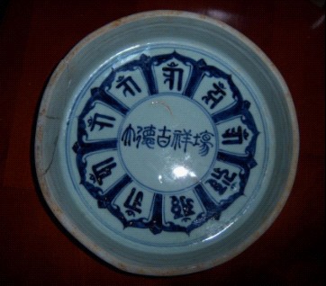 如廣東遂溪窯出土碗模外壁刻有“大德六年”款。元紫金釉貼花牡丹紋三足爐外底刻有“大德七年制”款。元鈞窯天藍(lán)釉紫紅斑盤上落有“大德八年”款。元定窯刻劃花魚紋盤外底刻“至元八年制公用”款,前五字直書,后二字橫書。元代白釉瓶上落有“大元國至元十九年九月十四日記耳”款。陜西銅川立地坡古窯址出土的殘瓷片上刻有“至元二十九年六月十四日”款。山西琉璃龍蓮花香爐上刻有“至大元年午汾陽琉璃寺詔伍塘城造”款。湖南衡東麻園窯址出土擂棒殘器上刻有“延佑四年”款。元代磁州窯白瓷枕的外底有墨書“至治二年前五月十五造磁齊居(君)仁”款。元龍泉窯青花瓷大花瓶上刻有“泰定四年丁卯歲仲伙吉日謹(jǐn)題”款。1979年江西豐城縣征集的出土于景德鎮(zhèn)的青花釉里紅樓閣式瓷倉上有青花料楷書“后至元戊寅五月二十三日”款;同時(shí)征集的出土于景德鎮(zhèn)的青花釉里紅塔式蓋罐頸部有一周青花楷書款為“大元至元戊寅六月壬寅吉置”。收藏于英國倫敦大維德基金會(huì)的元青花云龍紋象耳瓶頸部有青花料楷書“至正十一年四月良辰謹(jǐn)記”款。元磁州窯白釉褐花罐外壁釉下有褐彩書寫的“至正十一年七月二十九日”款。另外,元代瓷器上還有一種不書年號(hào)的干支紀(jì)年款,例如內(nèi)蒙古呼和浩特出土的鈞窯雙耳獸足爐上落有“乙酉年九月十五小宋自造香爐一個(gè)”款。