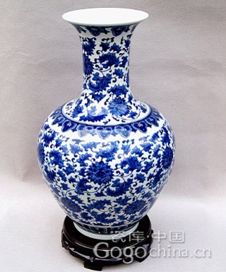圖:手繪纏枝蓮花青花花瓶