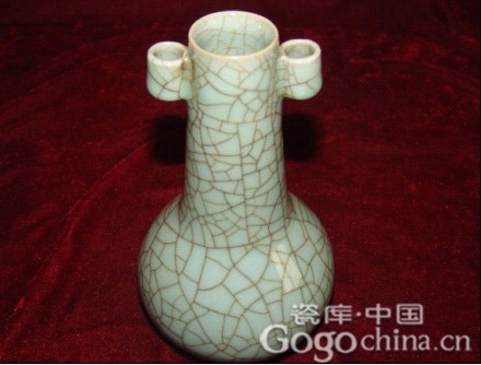圖:龍泉官窯青瓷粉青開片貫耳藝術(shù)花瓶