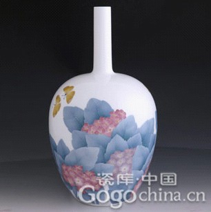 圖:大師作品·高檔瓷器蝴蝶自在花卉瓶 張玲大師手繪釉下五彩花瓶