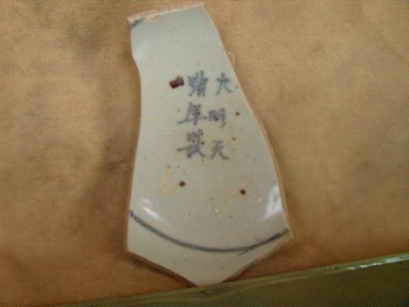 至于北京故宮博物院收藏的兩件青花小碗,外底書有“大明天順年制”青花料款,被認(rèn)為是萬(wàn)歷至天啟時(shí)的仿品。明代磁州窯瓷器中有書“正統(tǒng)拾壹年伍月壹日”款的,見于白地黑花罐上,以黑彩書于器肩。