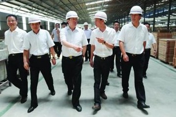 河南省省長郭庚茂(前排左三)視察內(nèi)黃陶瓷產(chǎn)業(yè)園