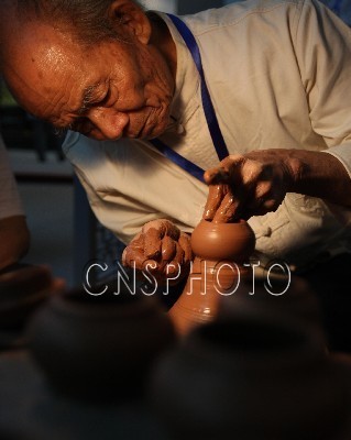 9月8日,潮州市陶瓷工藝美術(shù)大師吳瑞深在北京民族文化宮表演手拉壺藝絕活。8日上午,“廣東民間工藝精品展”在民族文化宮開幕,展覽匯集了150位廣東民間工藝大師的近400件精品。