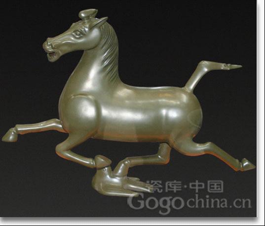 圖:高檔瓷器精品馬踏飛燕茶葉末釉陶瓷雕塑