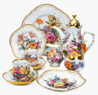 德國麥森高檔瓷器的每一位彩繪、造型師都必須經(jīng)過數(shù)十年的藝術(shù)與技術(shù)培養(yǎng),能在每件創(chuàng)作上融入不同時(shí)期的藝術(shù)風(fēng)格,展現(xiàn)近300年來的歐洲藝術(shù)史。舉例來說,名為“一千零一夜”的麥森瓷器作品,以豐富的人物做為創(chuàng)作主題,巧妙地刻畫出人物表情、眼神傳遞,以及情色的元素,整套瓷器價(jià)值100多萬元,值得玩家收藏;而另一套價(jià)值人民幣5萬多的“勿忘我黃玫瑰”也頗受歡迎,其中包括咖啡壺一只、咖啡杯碟六只、奶罐一只、糖罐一只、點(diǎn)心盤六只。