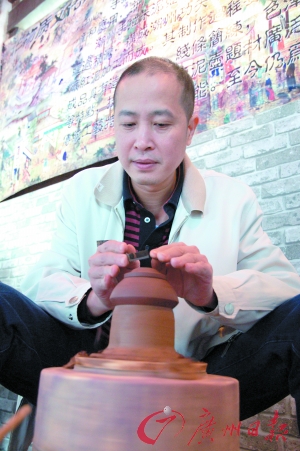 “以前的潮州朱泥壺都是作坊生產(chǎn),怕別人學而關著門做茶壺。家傳也是傳男不傳女。”謝華說,他之所以在廣濟橋公開演示,就是想讓更多的人知道:潮州也能出好的茶壺。