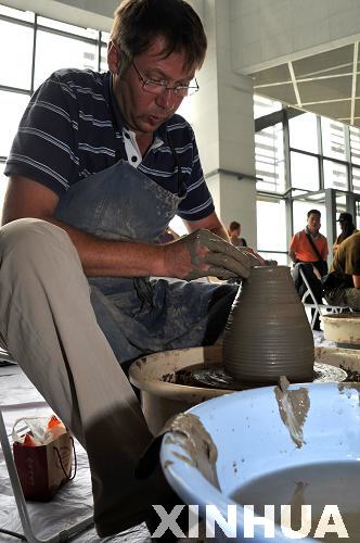 9月9日,來自奧地利的一名陶藝師在現(xiàn)場創(chuàng)作。
