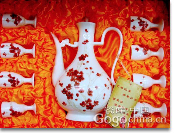 圖:紅梅玉壺春精品白瓷酒具9頭