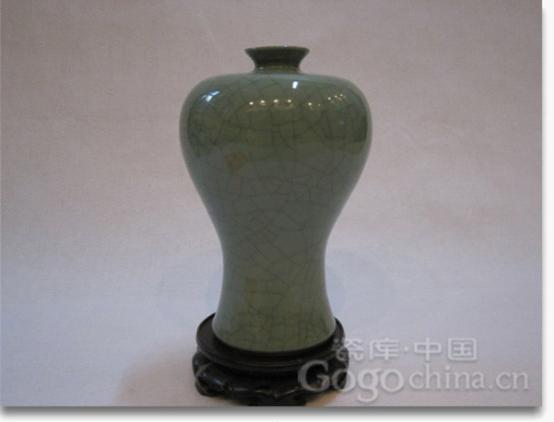 圖:藝術(shù)花瓶·龍泉青瓷哥窯開(kāi)片束腰小口瓶