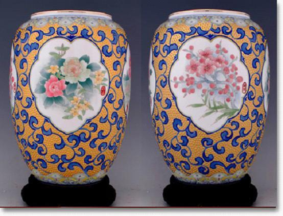 圖:四季花開四面開光毛瓷畫面高檔藝術(shù)花瓶