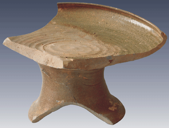 亭子橋窯址位于德清縣武康鎮(zhèn)龍勝村東山自然村北亭子橋,窯址主要分布于山體東側(cè),面積約1000平方米,采集的標(biāo)本有碗、罐、鼓座、句鑃殘件等,器型豐富,產(chǎn)品類型較多,是戰(zhàn)國時期一處非常重要的原始青瓷窯址。該窯址于1986年被發(fā)現(xiàn),2007年10月至2008年3月,浙江省文物考古研究所聯(lián)合德清縣博物館,對該窯址進(jìn)行了考古發(fā)掘。發(fā)掘中共揭露出7條窯爐遺跡,出土大量仿青銅器器形的原始青瓷禮器和樂器,以及形式多樣的各類窯具。揭露的7條窯爐遺跡均建在小山緩坡上,平面呈長條形,系富有南方地區(qū)特色的龍窯。出土產(chǎn)品標(biāo)本主要是原始青瓷,兼極少量印紋硬陶器。原始青瓷器的器形除了一般的日用器如:盤、碗、杯、盂、盅、盒等外,主要為大量的仿青銅禮器和樂器。禮器器形有盆形鼎、盂形鼎、豆、盆、三足盆、盤、三足盤、提梁壺、提梁盉、鏤孔長頸瓶、尊、簋、罍、罐、三足壺、鑒等,樂器器形有甬鐘、錞于、句鑃、三足缶、懸鈴和懸鼓座。這些器物,形式大小與青銅器相仿,造型規(guī)整,制作精良,紋飾精美,胎質(zhì)細(xì)膩堅致,釉面勻凈明亮,產(chǎn)品質(zhì)量已達(dá)成熟青瓷的水平。發(fā)掘成果證明該窯址是一處戰(zhàn)國時期越國地區(qū)主要燒造高檔次仿青銅原始青瓷禮器與樂器的窯址,它的發(fā)掘,為這些年江浙地區(qū)戰(zhàn)國時期古墓葬,如無錫鴻山貴族墓[7]、德清梁山戰(zhàn)國墓等中出土的一大批仿青銅原始瓷禮器與樂器找到了明確的產(chǎn)地和窯口。[8]