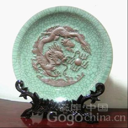 圖:龍泉官窯大龍盤(pán)高檔掛盤(pán)|家居吉祥擺設(shè)-藝術(shù)瓷盤(pán)