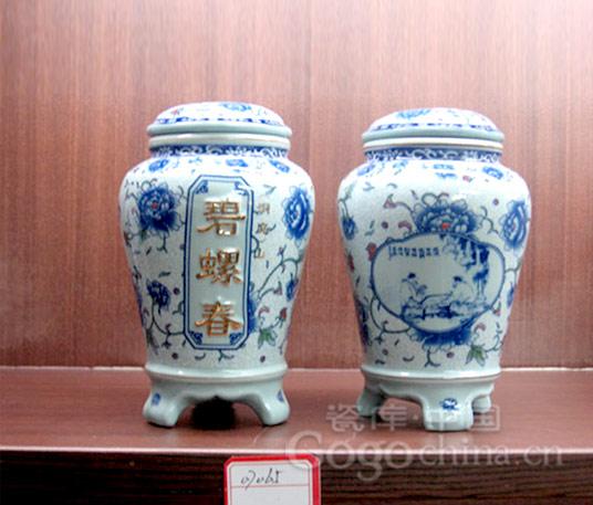 圖:青花瓷鼎狀碧螺春茶葉罐(定制)