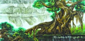 雋永清新是陶藝大師彭榮新瓷板畫創(chuàng)作最突出的藝術(shù)風(fēng)格。而老榕樹系列,是彭榮新創(chuàng)作的一個符號。高大參天的榕樹隱藏在迷蒙的林間曉霧中,這是其作品的主要意象。樹下或是牧童水牛,或是飲水的小鹿,或是潺潺的溪流,或是嬉戲的白鵝,真讓人分不清這畫中究竟是塵世還是仙境。