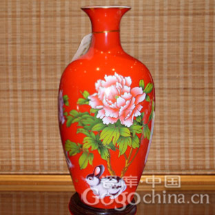圖:十二生肖兔年禮品瓷中國(guó)紅瑞兔賀歲吉祥花瓶