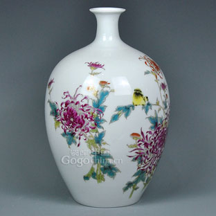 圖:景德鎮(zhèn)粉彩秋菊豐收花瓶