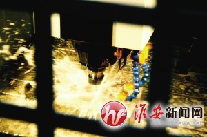 在工博會現(xiàn)場,淮安通用水刀科技有限公司將公司的產(chǎn)品搬到現(xiàn)場演示。隨著開關(guān)的啟動,一個細小的水柱在高壓作用下,射向下面的鋼板。這個水柱產(chǎn)生的壓力可以達到320Mpa,相當(dāng)于3200KG的水壓作用在1mm的水柱上。目前,可以切割厚達15cm的鋼板。