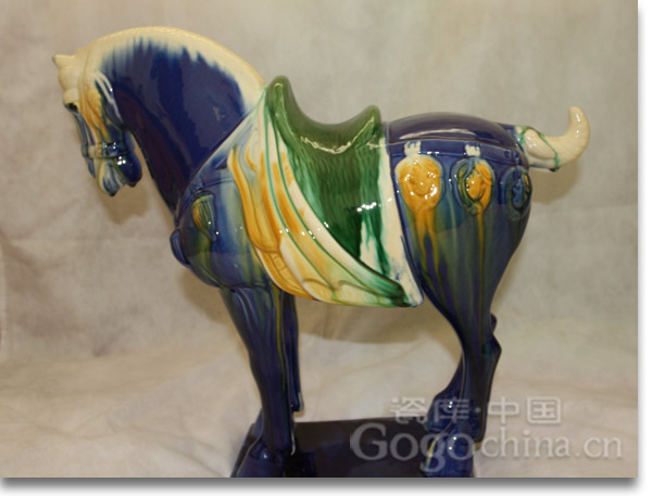 圖:洛陽高檔禮品唐三彩工藝品藍(lán)披鬃大馬