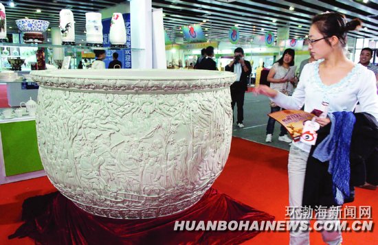 本屆陶瓷博覽會上,一件直徑1.6米、高1.05米的大缸引來眾多市民參觀。