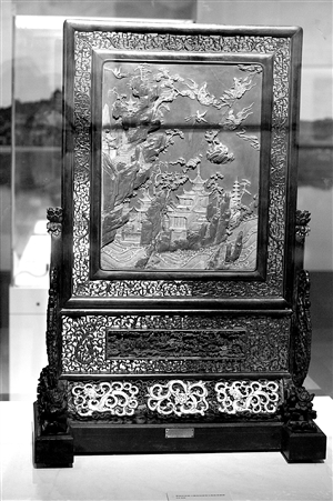 這件插屏四周鏤空雕花,能夠把中間的紫石托起來非常不容易,“這有力學(xué)原理,體現(xiàn)了當(dāng)時工匠的智慧。”闞躍告訴記者。說完,他指著插屏中間的一道裂縫說,“不過遺憾的是,這件寶貝有開裂,是在哈丁博士捐還頤和園時,運輸途中裂開的,但我們不打算修補,要完好地保留這些歷史信息。”