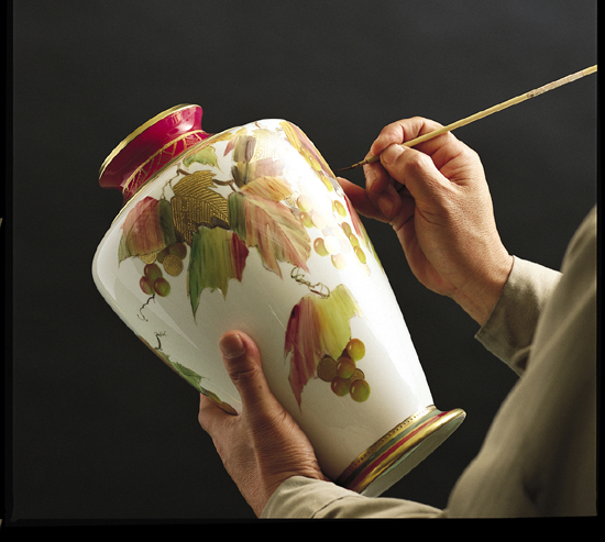 手繪本來是美術(shù),瓷器本來是工藝。將色彩圖案繪在瓷器上便成就了“工藝美術(shù)”。東方的工藝美術(shù)源遠(yuǎn)流長。但是隨著近現(xiàn)代機(jī)械的進(jìn)步,原本由手工做的藝術(shù)成形部分,漸漸地由機(jī)器去完成了。由此帶來兩方面的“工藝美術(shù)災(zāi)難”:首先,藝術(shù)價(jià)值在于“人為”,機(jī)器作品藝術(shù)價(jià)值低;其次,機(jī)器生產(chǎn)是工業(yè)化行為,流水線出來的藝術(shù)品再精細(xì),也因數(shù)量多而泛濫貶值。因此,在西方人觀念中,機(jī)制的藝術(shù)品雖可被稱之為Art,但是前面須加上“Industrial(工業(yè)、產(chǎn)業(yè),含有機(jī)制的意思)”一詞,以區(qū)別于手工的Craft,而成為Industrial Art。自然,Industrial Art的藝術(shù)價(jià)值就很差。作為工藝美術(shù),只能用Craft,為了強(qiáng)調(diào)“手工”,甚至還有handcraft一詞。