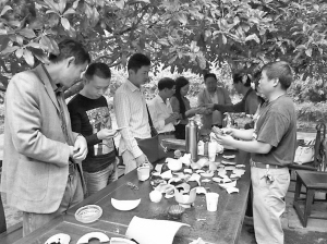 寧波殘瓷愛好者在鑒賞會(huì)上相互交流。