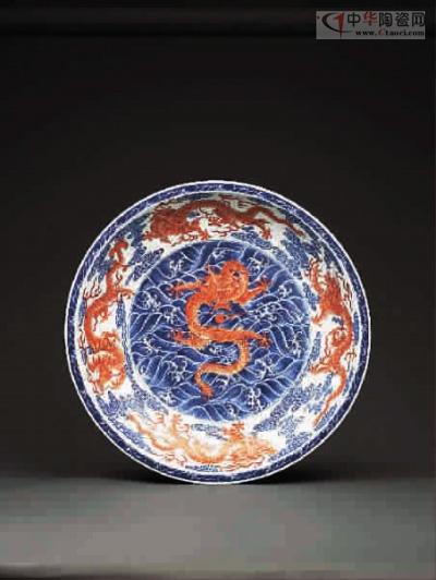 青花紅彩波濤云龍紋大盤(pán)