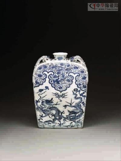 青花雙龍戲珠紋扁壺