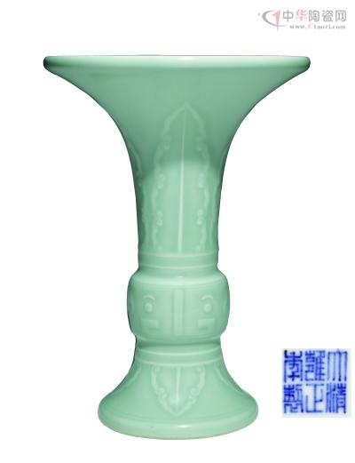 清雍正粉青釉饕餮紋觚