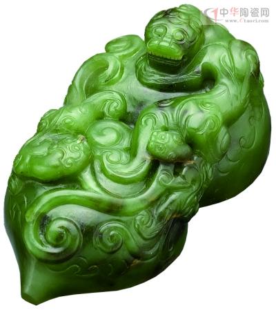 5月17日,邦瀚斯在倫敦新邦德街舉行了“中國(guó)陶瓷及工藝品拍賣”,一件清乾隆翠玉雕螭龍紋鈕“三希堂”篆字陽(yáng)文葫蘆形印,估價(jià)逾千萬(wàn)元,最終成交價(jià)3400萬(wàn)元,榮登本場(chǎng)冠軍;另一件18世紀(jì)青玉雕山水人物大山子,為李鴻章贈(zèng)予恭親王奕欣的禮物,后輾轉(zhuǎn)日本、美國(guó),1963年又于倫敦拍賣,成為英國(guó)重要的私人玉雕收藏,估價(jià)為400萬(wàn)元至600萬(wàn)元,最終以481萬(wàn)元成交。