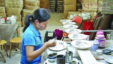 陶瓷分為貼花和手繪2種,一般貼花的大都屬于批量生產(chǎn)的,成本和價格相對都比較低。而手繪陶瓷是藝術家在陶瓷上繪畫的藝術,具有獨特性,藝術價值也相對比較高,成為人們收藏和送禮的佳品。如今,潮州市一些陶瓷企業(yè)千方百計提高產(chǎn)品附加值,重拾手繪陶瓷工藝,從而贏得國內外客戶的青睞。圖為一企業(yè)工人在手繪陶瓷。