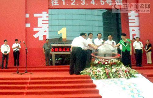 景德鎮(zhèn)陶藝大師席新明、楊曙華、蔡玲玲、王采在主席臺與中央、吉林省等領證導共同見第七屆中國(長春)民博會啟動儀式