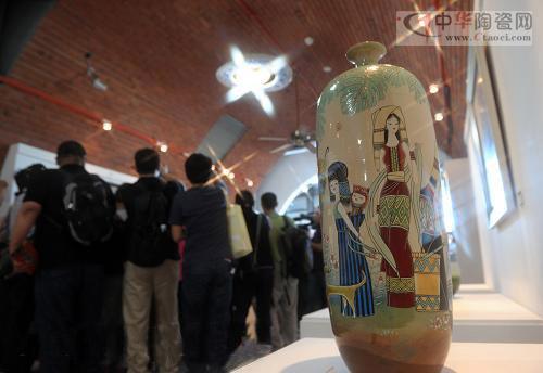 。玻叭,江西景德鎮(zhèn)當代陶瓷藝術展在臺北開幕。共有59件展品參加了為期兩天的展覽。