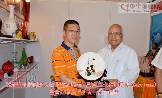 專訪結(jié)束后,中國駐古巴領(lǐng)事館張拓大使先后帶引古巴部長會(huì)議副主席卡布里薩斯和外貿(mào)外資部部長羅德里參觀了富貴紅展館,富貴紅品牌創(chuàng)始人徐少東分別向他們贈(zèng)送了富貴紅文化禮品《龍盤》和《龍瓶》。