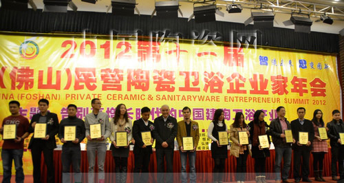 近日,佛山市施瑯陶瓷喜獲“2012年度十大建陶明星企業(yè)”和“2012年度優(yōu)秀建陶衛(wèi)浴新產(chǎn)品”殊榮。據(jù)悉,這是佛山市工商業(yè)聯(lián)合會、佛山市總商會主辦的2012第十一屆中國(佛山)民營陶瓷衛(wèi)浴企業(yè)家年會活動,佛山施瑯陶瓷受邀參加了此次年會活動,憑借堅(jiān)厚的企業(yè)實(shí)力,從多家企業(yè)中脫穎而出,獲得了兩大榮譽(yù)證書。
