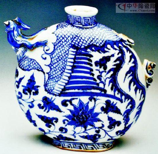 元代青花鳳首扁壺。追溯中國(guó)近代歷史,元代的中國(guó)海外貿(mào)易比較繁榮,大量的中國(guó)青花瓷器被運(yùn)輸?shù)搅酥袞|地區(qū),尤其是景德鎮(zhèn)燒制的青花瓷器,胎體潔白、釉色純凈、青花色澤濃艷青翠,漂亮無(wú)比,非常受當(dāng)?shù)鼐用竦南矚g。