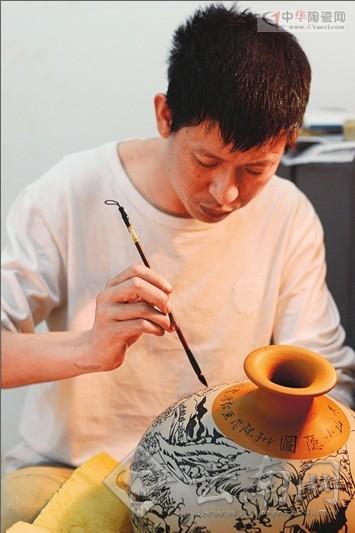 走進(jìn)著名的紹康陶藝,一位遠(yuǎn)道從德國(guó)來的收藏家正在認(rèn)真看一把陳紹康制作的精品壺,他是從網(wǎng)絡(luò)上看到這把壺后一見鐘情,打著“飛的”到云南來,想將其收入囊中。記者在紹康陶藝看到,一把普通的素壺的價(jià)格在2000元至3000元,而梅瓶等大件的價(jià)格達(dá)上萬元;將陳紹康字畫真跡經(jīng)雕刻填泥等工藝展現(xiàn)在壺身上的精品最高市場(chǎng)價(jià)已達(dá)數(shù)萬元。