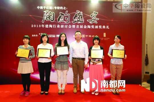 4月19日,南方都市報組織的“2013建陶行業(yè)研討會暨首屆"金陶獎"頒獎典禮”活動,在桂城中海千燈湖1號會所舉行。該活動由中海地產(chǎn)冠名,各大陶瓷客戶踴躍參加,最終18項大獎花落各家。