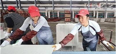 茶陵華盛建筑陶瓷有限公司的流水生產(chǎn)線上,工人們正在緊張地作業(yè)