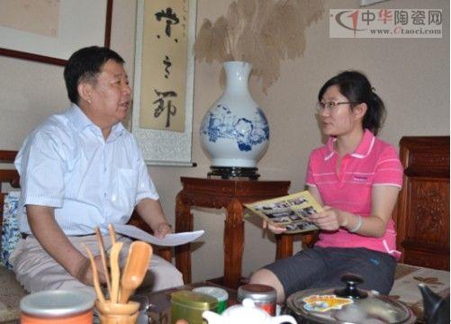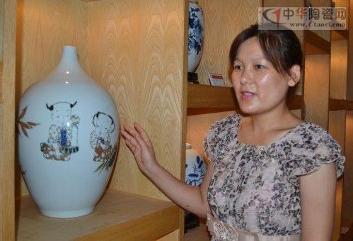 泰山陶瓷藝術研究院創(chuàng)作室主任李云霞(右)介紹創(chuàng)作經(jīng)過