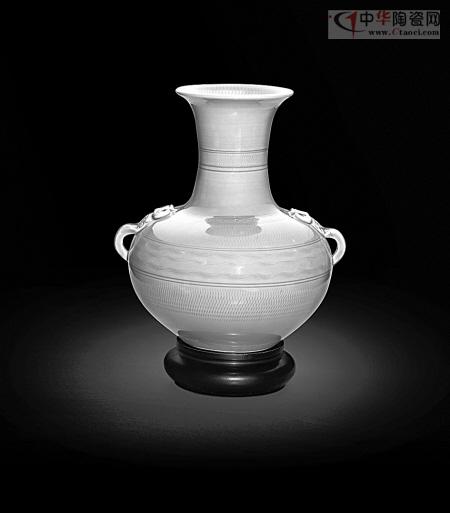 越窯茶花圓腹瓶