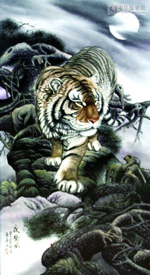 夏仁錦從事陶瓷藝術(shù)創(chuàng)作二十余年,尤其擅長動(dòng)物走獸繪畫。他帶來的作品中有4幅以虎為主題的瓷板畫,通過釉上新彩的藝術(shù)陶瓷表現(xiàn)形式,刻畫出萬獸之王虎的雄風(fēng)。