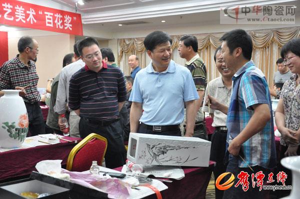 在筆會現(xiàn)場,陳興超走進藝術(shù)家中間,與他們親切交流,并對他們的作品榮獲2013年中國工藝美術(shù)“百花獎”表示祝賀。
