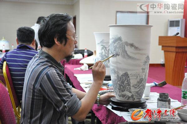 據(jù)了解,此次現(xiàn)場筆會是我省有史以來人數(shù)最多,規(guī)模最大的一次陶藝現(xiàn)場創(chuàng)作。參加此次筆會的藝術(shù)家其中有20位是省級工藝美術(shù)大師或大學教授。筆會現(xiàn)場,藝術(shù)家們共同揮毫灑墨,以人物、山水、花鳥為題,采取釉上和釉下兩種繪畫方式,即興創(chuàng)作了60余件形式多樣、風格各異的陶瓷繪畫作品。他們此次所創(chuàng)作品將保留在鷹潭,作為慶祝我市建市30周年紀念日的一份賀禮。