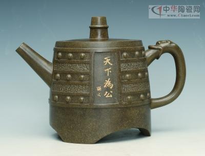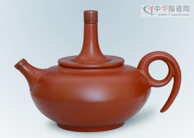 梅蘭竹菊四君子以其卓然不群的形象入詩入畫,象征知識分子處事傲然而不混同于流俗。王錫軍的《高風(fēng)亮節(jié)》壺也依此創(chuàng)生,全壺由16根竹節(jié)的外觀組成,挺拔高古,腰間纏繞兩根細(xì)竹,清新雅致,別有生機(jī)。竹子虛心,歲寒猶綠,直而不屈,有儒者高風(fēng)亮節(jié)的風(fēng)范。用作品來表達(dá)思想,既是個人創(chuàng)作理念的表達(dá),也是對儒家審美標(biāo)準(zhǔn)的反饋。中國傳統(tǒng)文化“獨尊儒術(shù)”,縱使對法家的評價莫衷一是,法家的進(jìn)取精神還是在中國文化里留下了深刻的一筆!兑恢嫣臁穳匦稳缙涿 逗蠚g》之壺身,壺蓋有玉柱凌云之勢,寫意的曲把如揮毫潑墨的縱情一筆,全壺表現(xiàn)出一種男子漢頂天立地的氣魄、擎天柱的形象。這把壺風(fēng)格激越,能給人積極向上的力量。正因法家是男性話語的極致表述,在紫砂壺的創(chuàng)作中,男性會更容易受到法家的影響,在壺中注入豪邁、精進(jìn)、激越的氣概。